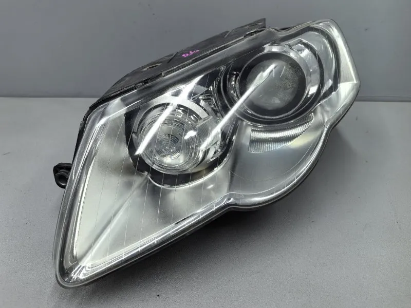 Фара ксеноновая левая Volkswagen Passat B6 ( Фольксваген Пассат B6 ). Дефект : помутнение на стекле, микротрещины. Фара снята с праворульного автомобиля .