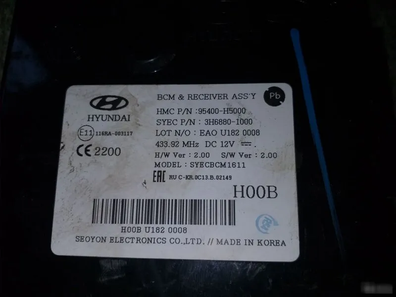 Блок управления центральным замком на автомобиль Hyundai Solaris 2 Хендай Солярис 2 двигатель 1.6 литра бензин . Оригинал б.у. Отправим в регионы. 95400-H5000 95400H5000