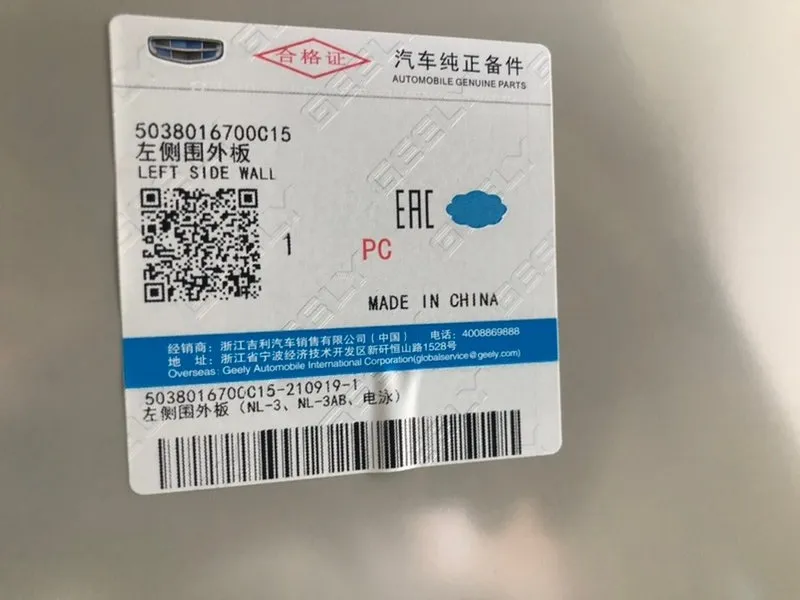 Номер и производитель: 5038016700C15 Geely