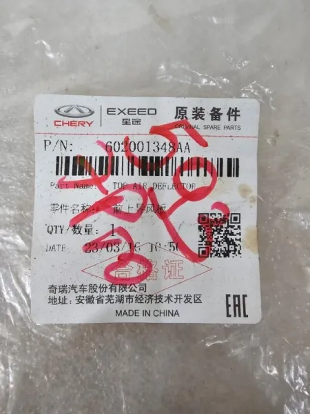 Номер и производитель: 602001348AA Chery