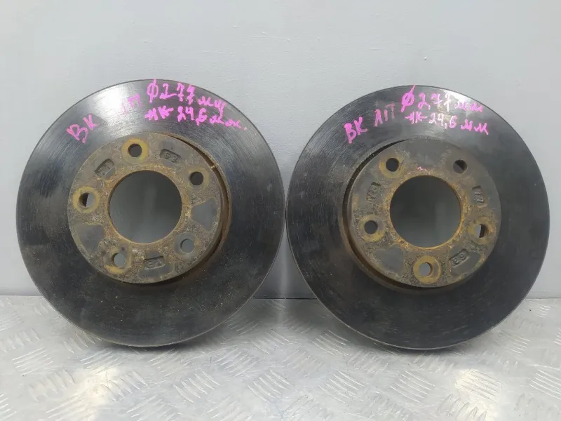 Диски тормозные Mazda 3 BK. Б/у оригинал из Японии, без пробега по России. Диаметр 277 мм. Остаток 24,6 мм. Продается комплектом как на фотографиях. Цена указана за комплект!