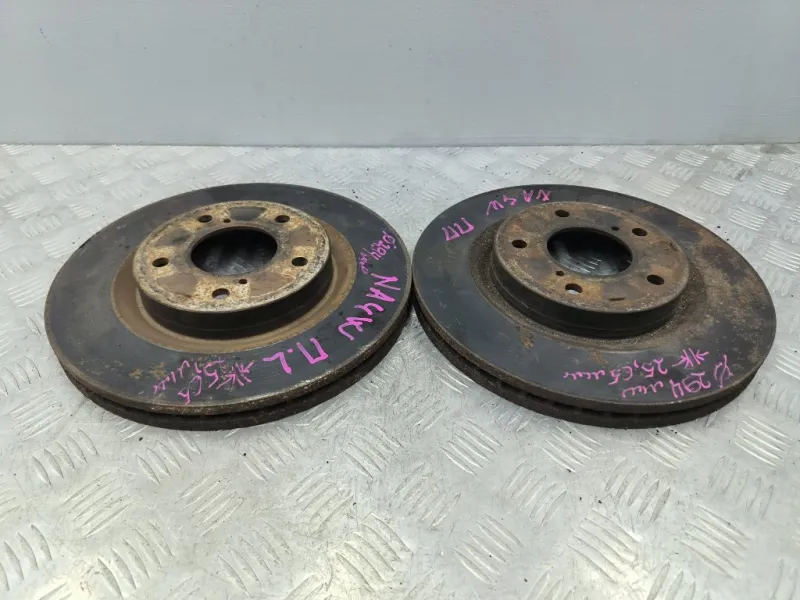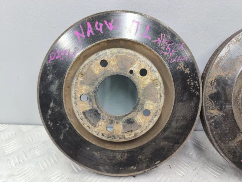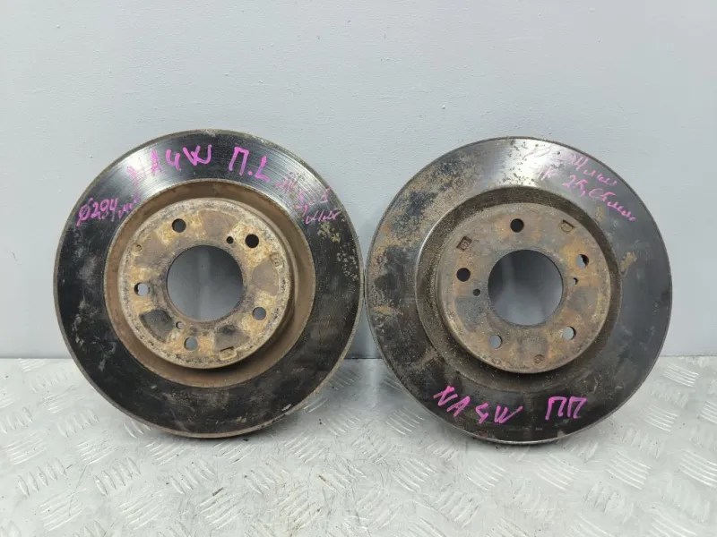 Диски тормозные Mitsubishi Grandis NA4W. Б/у оригинал из Японии, без пробега по России. Диаметр 294 мм. Остаток 25,65 мм. Сняты с праворульного автомобиля. Продаётся комплектом как на фотографиях! Цена указана за комплект!