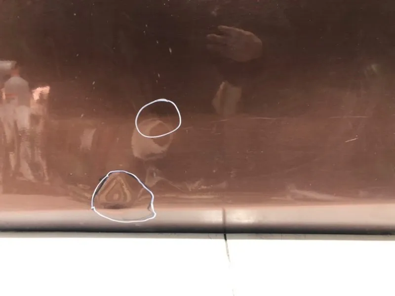 Имеются царапины, вмятины, выпуклость.