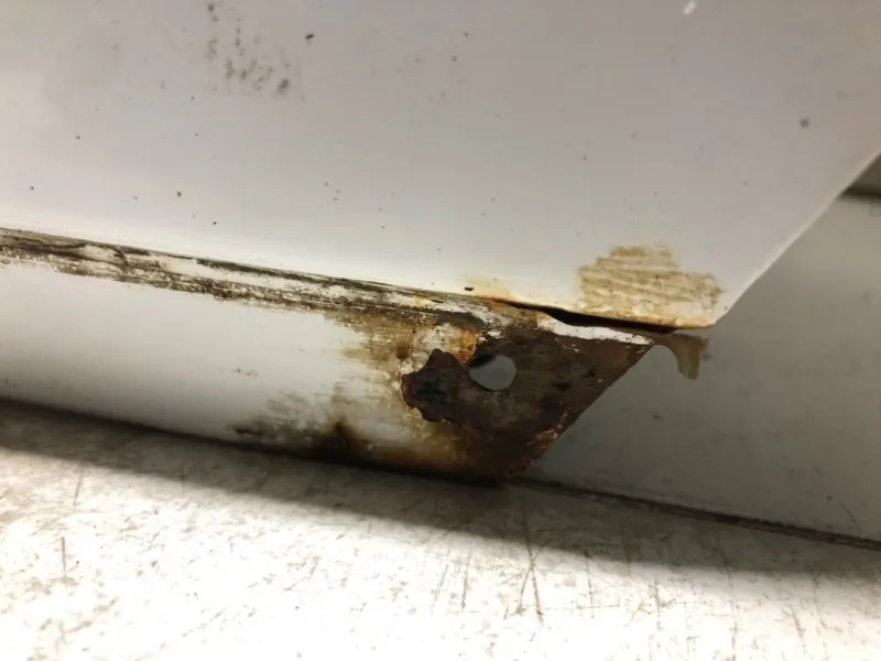 после вторичного окраса. сколы ЛКП, вмятина, поверхностная коррозия.