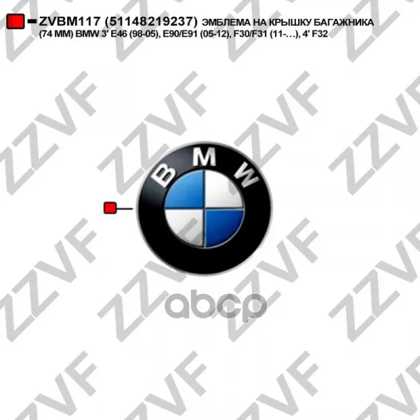 ЭМБЛЕМА НА КРЫШКУ БАГАЖНИКА (74 ММ) BMW 3' E46