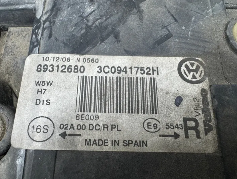 Фара ксеноновая правая Volkswagen Passat B6 дорестайлинг ( Фольксваген Пассат B6 ). Дефект: потертости, скол. Фара снята с праворульного автомобиля .