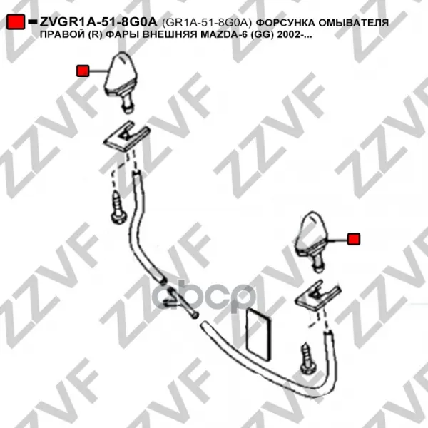ФОРСУНКА ОМЫВАТЕЛЯ ПРАВОЙ (R) ФАРЫ ВНЕШНЯЯ MAZDA-6