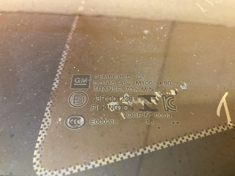 Стекло кузовное заднее левое / глухое стекло заднее левое / форточка задняя левая Б/У на Шевроле Камаро VI, 2018-2023 годов выпуска, рестайлинг.