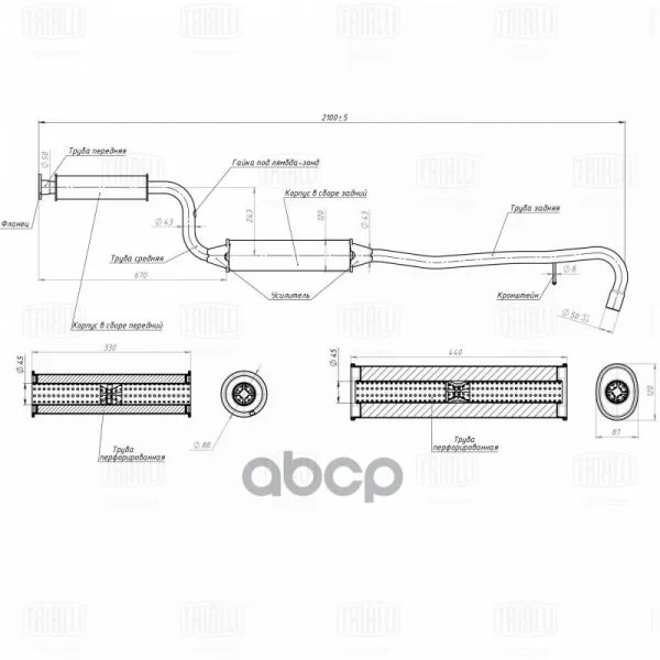 Глушитель для а/м Лада 2123 Евро-3 доп. (рез-р) фланец 3 отв. (алюм. сталь) TRIALLI EAM 0120 Trialli арт. EAM 0120