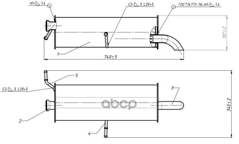 Глушитель для а/м Peugeot 307,308 / Citroen C4 (00-) 1.6i осн. (корот.труба) (алюм. сталь) (EMM 0509 Trialli арт. EMM 0509