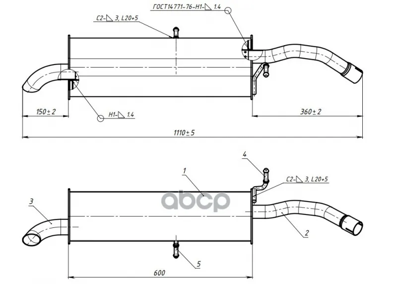 Глушитель для а/м Peugeot 308 (07-) 1.6i осн. (под труб.хомут) (алюм. сталь) TRIALLI EMM 0145 Trialli арт. EMM 0145