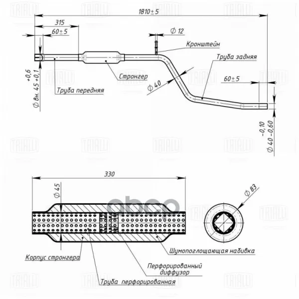 Глушитель для а/м Renault Logan (04-) доп. (резонатор) со стронгером (алюм. сталь) T-Sport TRIALLI EAM 0143 Trialli арт. EAM 0143