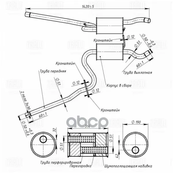 Глушитель для а/м Skoda Octavia A5 (04-) 1.6i доп. (резонатор) (алюм. сталь) (EAM 1801) Trialli арт. EAM1801