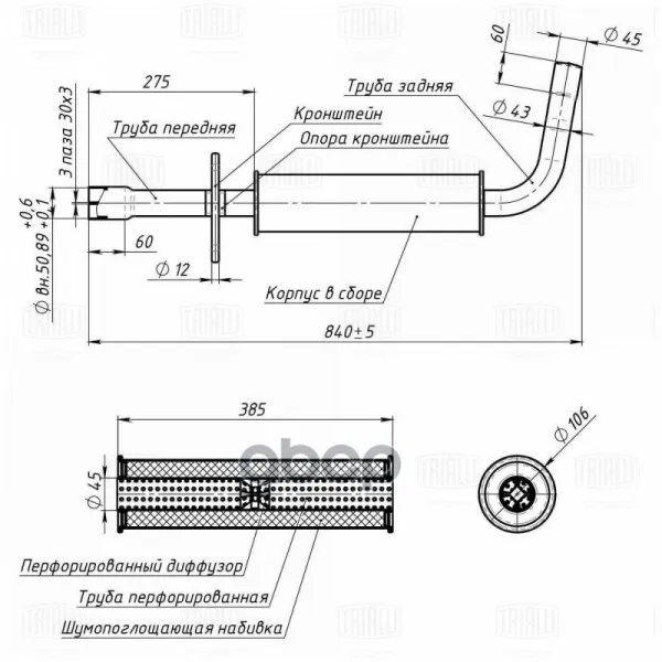 Глушитель доп. алюм. (резонатор) для а/м Skoda Octavia (96-) (EAM 1803) TRIALLI EAM1803 Trialli арт. EAM1803
