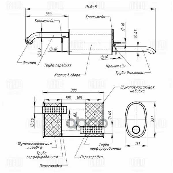 Глушитель осн. алюм. для а/м Chevrolet Lacetti (04-) Седан (EMM 0507) TRIALLI EMM0507 Trialli арт. EMM0507