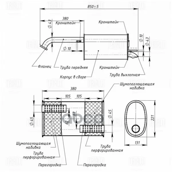 Глушитель основной CHEVROLET Lacetti HATCHBACK 04-> TRIALLI EMM 0508 TRIALLI EMM0508 Trialli арт. EMM 0508