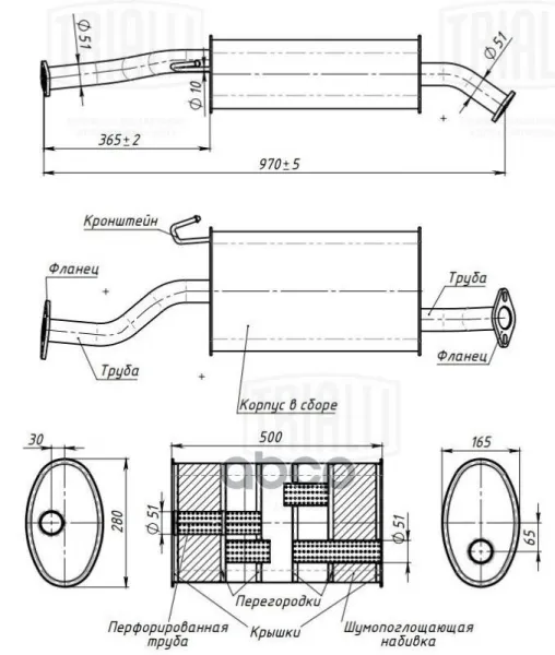 Глушитель с крючком алюминиевая для а/м Great Wall Hover H3 H5 (07-) 2.0i 2.4i Евро-3 Trialli арт. EMM2704