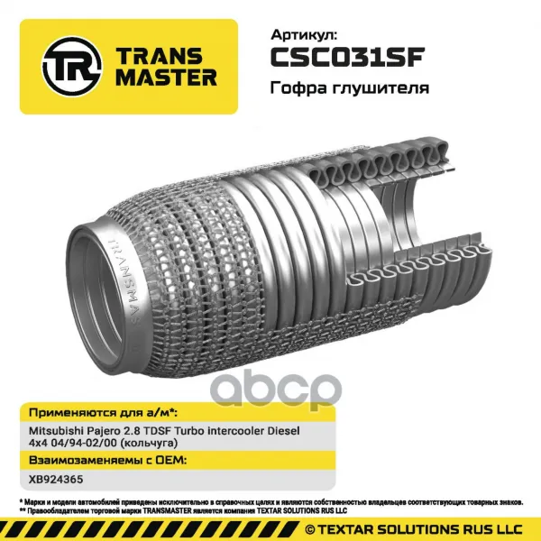 Гофра глушителя Mitsubishi Pajero 2.8 TDSF Turbo intercooler Diesel 4x4 04/94-02/00 (кольчуга) 94131 TRANSMASTER арт. CSC031SF