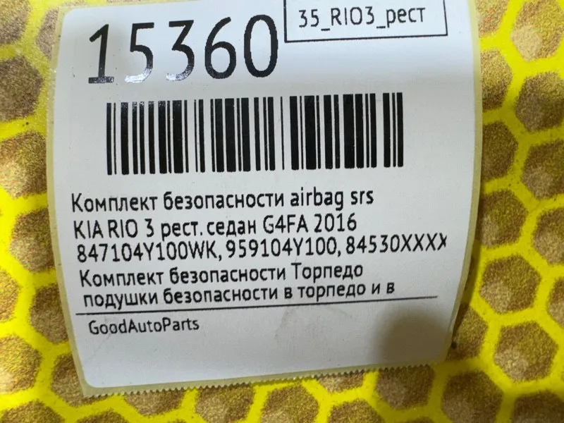 Комплект безопасности AIRBAG SRS KIA RIO