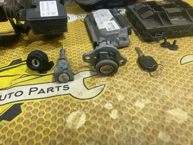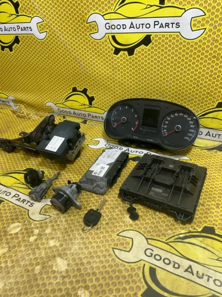 Комплект зажигания 1,6 МКПП Volkswagen Polo 5 дорест 2014 г.в., б/у оригинал, Состав: Электронный блок управления двигателем, блок комфорта BCM, замок зажигания, личинка замка двери, личинка замка багажника, ключ зажигания, блок ABS, панель приборов