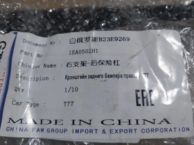 Кронштейн бампера FAW Bestune 1EA0502H1 T77, задний правый