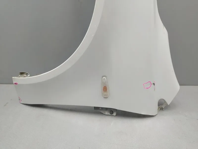 Крыло переднее левое Mitsubishi Lancer 10 CY ( Митсубиши Лансер 10 CY ). Дефекты: тычки, царапины, в районе отверстий под фару немного погнуто.