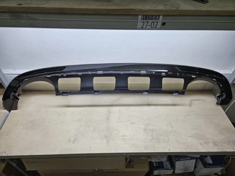 Молдинг нижний, губа, панель, накладка нижняя заднего бампера, чёрный глянец, под ДВЕ ВЫХЛОПНЫЕ ТРУБЫ для Kia Optima 4 поколения, в кузове JF, дорестайлинг 2015-2018 год выпуска.
