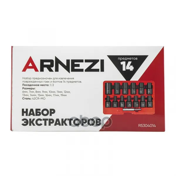 Набор головок 1/2" (экстракторов) для поврежденных гаек и болтов, 14 пр. (6-19мм) для поврежденных г ARNEZI R5304014 ARNEZI арт. R5304014