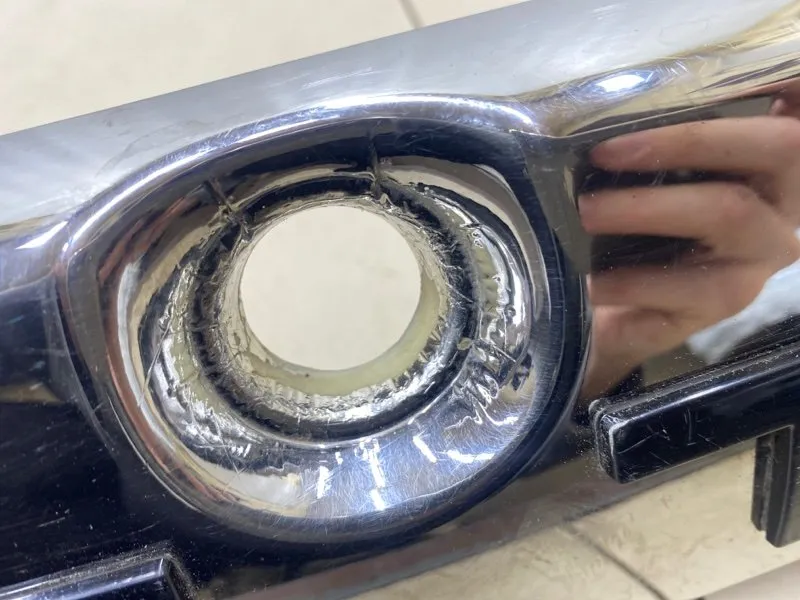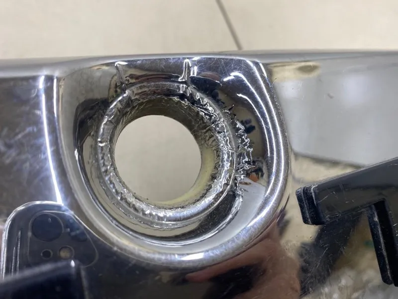 Есть царапины, вздутие хрома в районе личинки