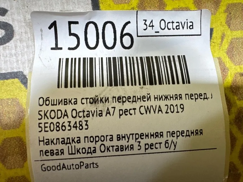 | Номер детали: | 5E08634839B9 |