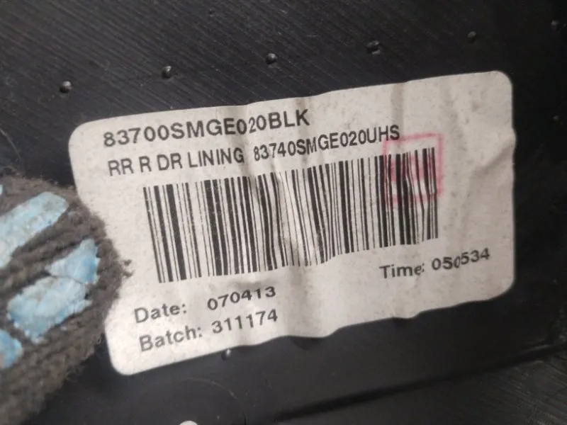 Обшивка двери Honda Civic 2007 83700SMGE020BLK 5D R18A2, задняя правая
