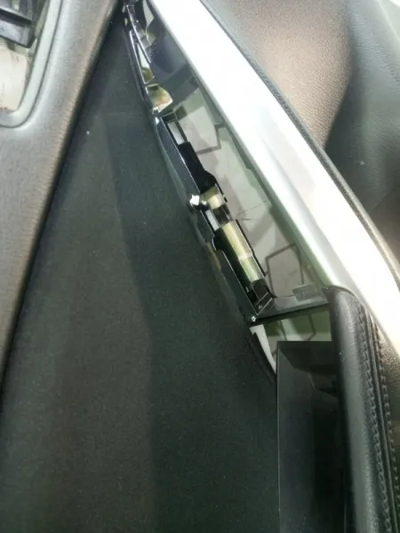 Комбинированная обшивка. Чёрная кожа и чёрная ткань. На обшивка след от скотча.