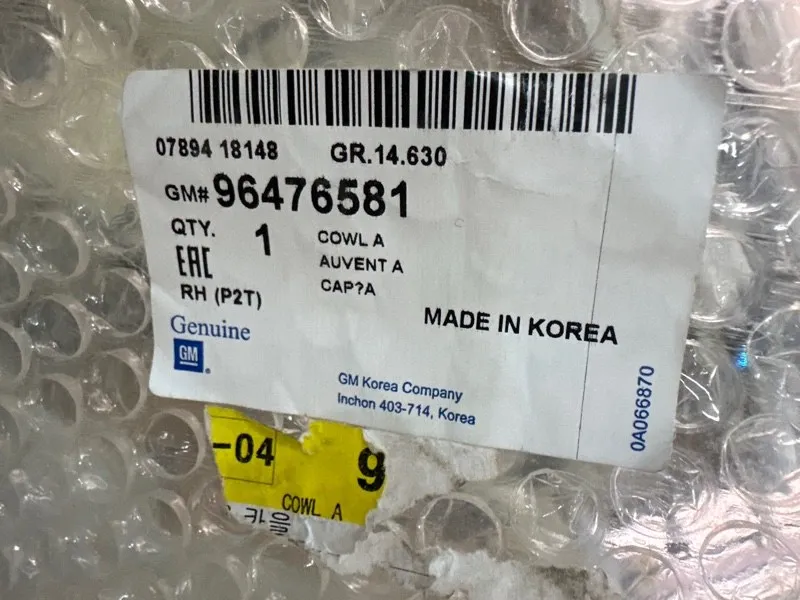 | Номер детали: | 96476581 |