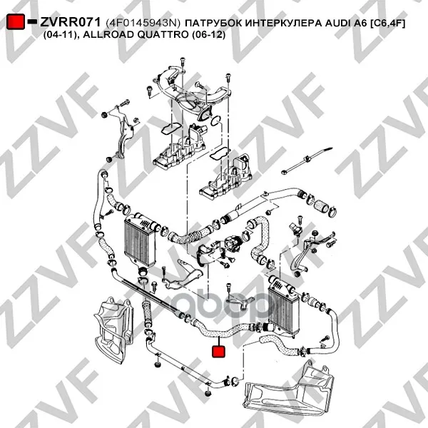 ПАТРУБОК ИНТЕРКУЛЕРА AUDI A6 [C6,4F] (04-11),