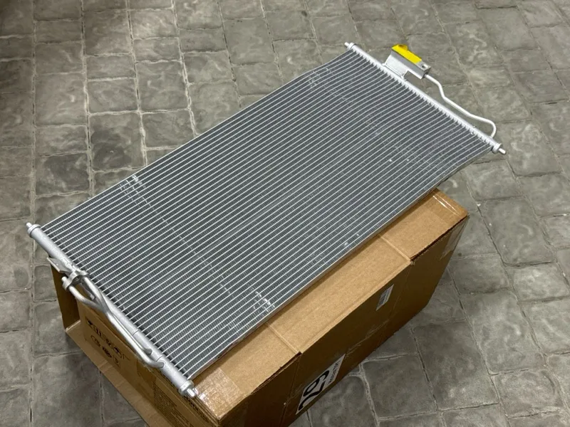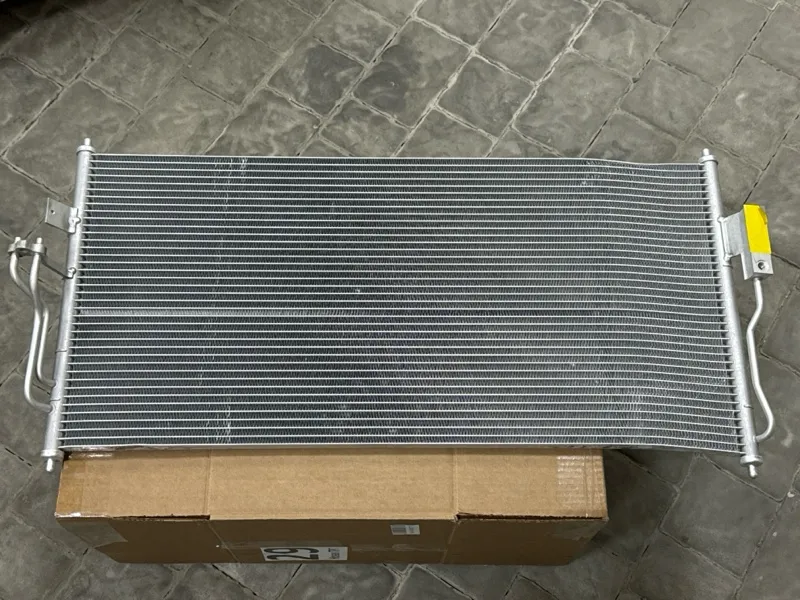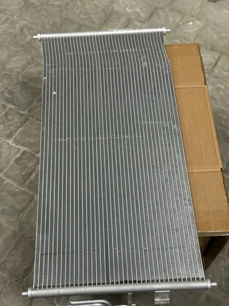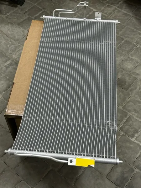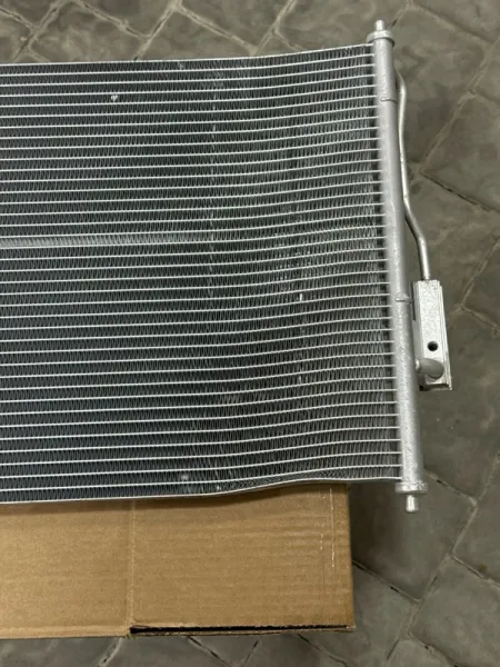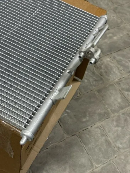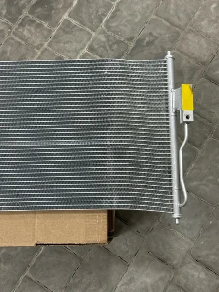 Радиатор кондиционера Nissan Almera Classic B10. Состояние: новый, оригинал, имеется дефект полученный при транспортировке (погнут). СМ. ФОТО.