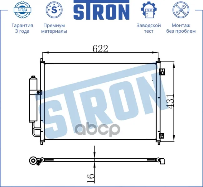 Радиатор кондиционера NISSAN (X-TRAIL II) 2007 - 2015 M9R760 MR20DE M9R M9R832 M9R833 QR25DE STRON арт. stc0086