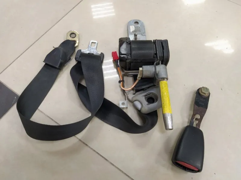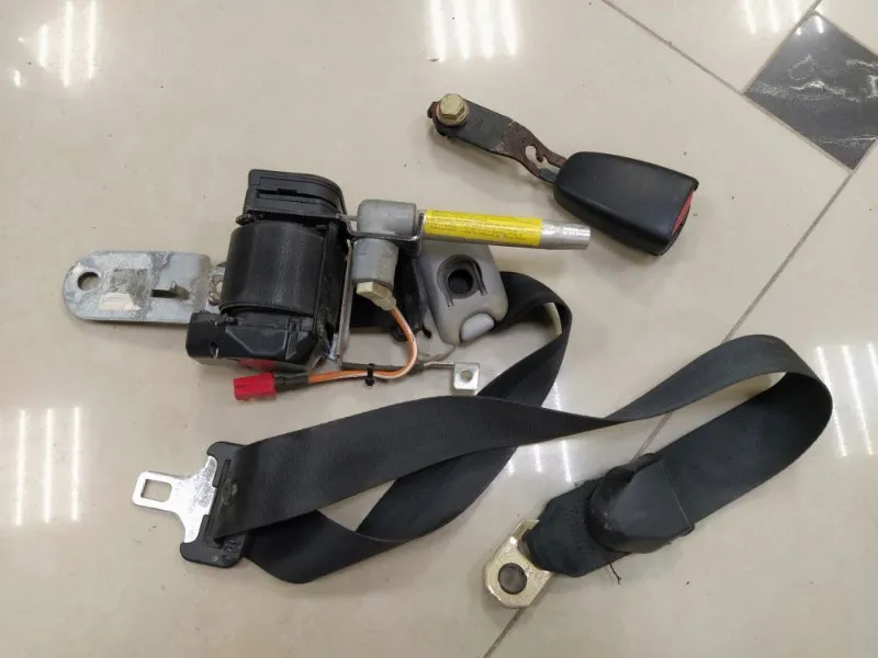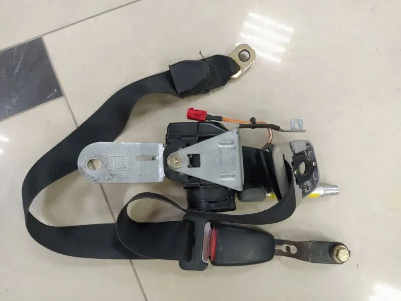 Ремень безопасности передний правый на Mitsubishi Carisma 1999 года. С защёлкой, пиропатроном и планкой. 2 контакта.