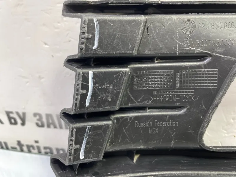 Решетка противотуманной фары Volkswagen Polo 2015-2020 6RU853666F 5 612 РЕСТАЙЛИНГ, правая