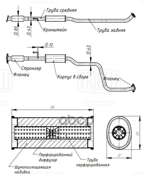 Глушитель для а/м Hyundai Solaris II (17-) 1.6i доп. (резонатор) (алюм. сталь) (EAM 0412) Trialli арт. EAM 0412
