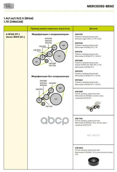 Ролик привод. ремня для а/м Mercedes A (W168) (с натяж. мех.) тройной d70/76/70 TRIALLI CM 5287 Trialli арт. CM 5287