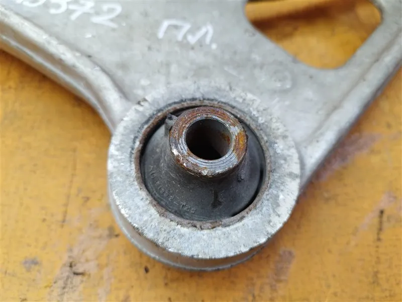 Левый передний нижний рычаг Б/У на Хонда Пилот III дорестайлинг, 2015-2018 годов выпуска. Большой сайлентблок с трещинами.