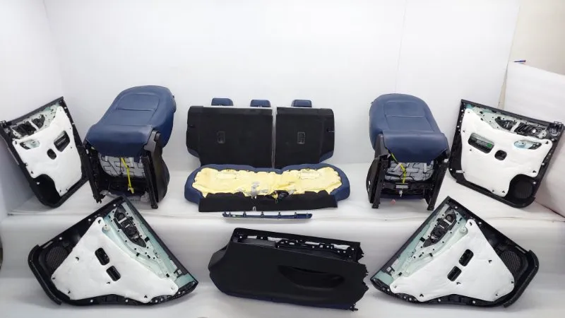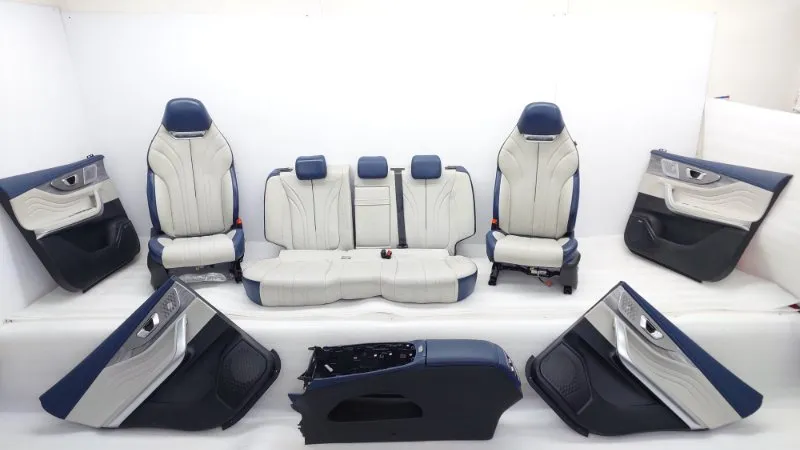 Комплект. Состояние отличное, оригинал, имеются незначительные потертости. Передний ряд оборудован обогревом, подушками безопасности, электрорегулировкой сиденья водителя.