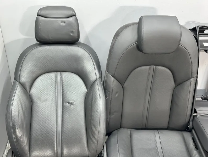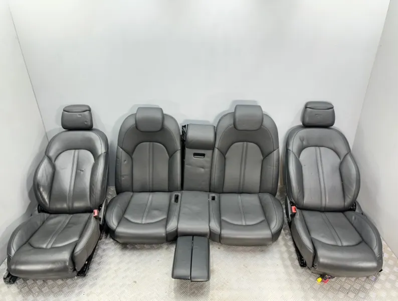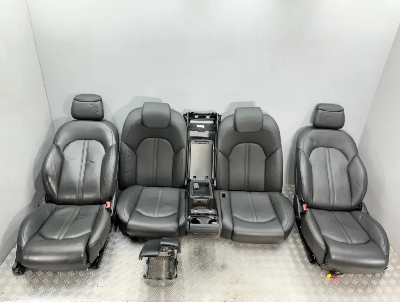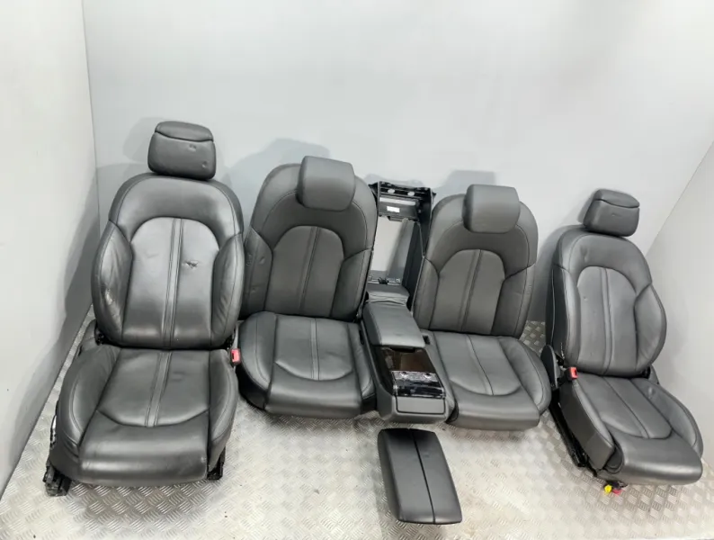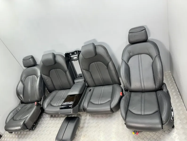 Салон, сиденья Audi A8 D4. Б/у оригинал из Японии, без пробега по России. Продаётся комплектом как на фотографиях. Комплект передних сидений, заднего дивана, подлокотники. С регулировкой сидений и электроприводом для передних сидений и функцией памяти. Подогрев передних и задних. Присутствуют примятости, надрывы, царапина на пластике на переднем левом сидении.