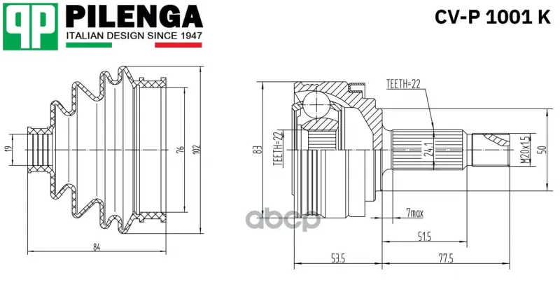 ШРУС внеш. LADA 2108-2112, 1117-1119, 2170, 2190, 2192, 2194 PILENGA CV-P1001K (2,10802E+11) PILENGA арт. CVP1001K