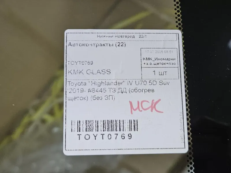 Kmk glass Toyota Highlander iv u70 5d suv '2019- #8445 тз дд (обогрев щеток) (без зп)