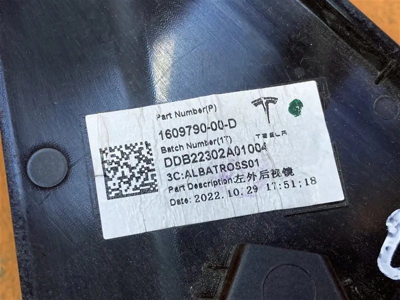 Декоративная накладка левой двери / крышка зеркала / накладка зеркала / уголок двери левый / молдинг Б/У на Тесла Модел У дорестайлинг, 2019-2025 годов выпуска.