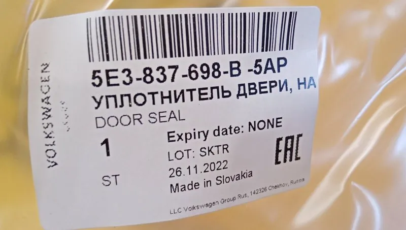 Уплотнитель (наружный) Skoda Octavia A8 (новый)