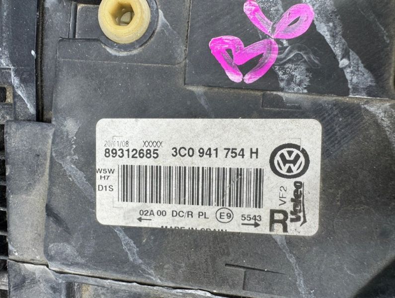 Фара ксеноновая правая Volkswagen Passat B6 дорестайлинг ( Фольксваген Пассат B6 ). Дефекты: потертости, микротрещины. Фара снята с праворульного автомобиля .