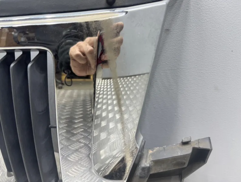 Решетка радиатора Jeep Grand Cherokee WK2 дорестайлинг ( Джип Гранд Чероки WK2 ). Дефекты: сломаны крепления , потертость на хроме.
