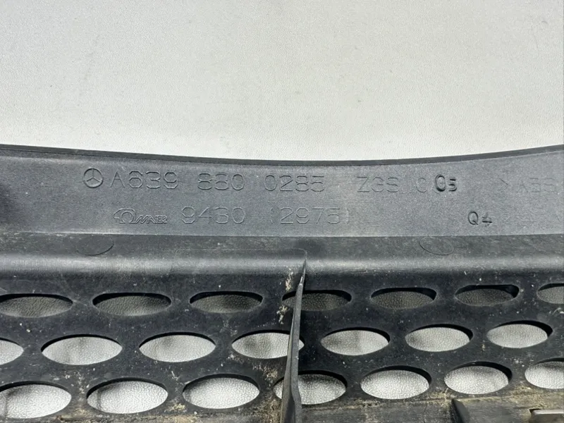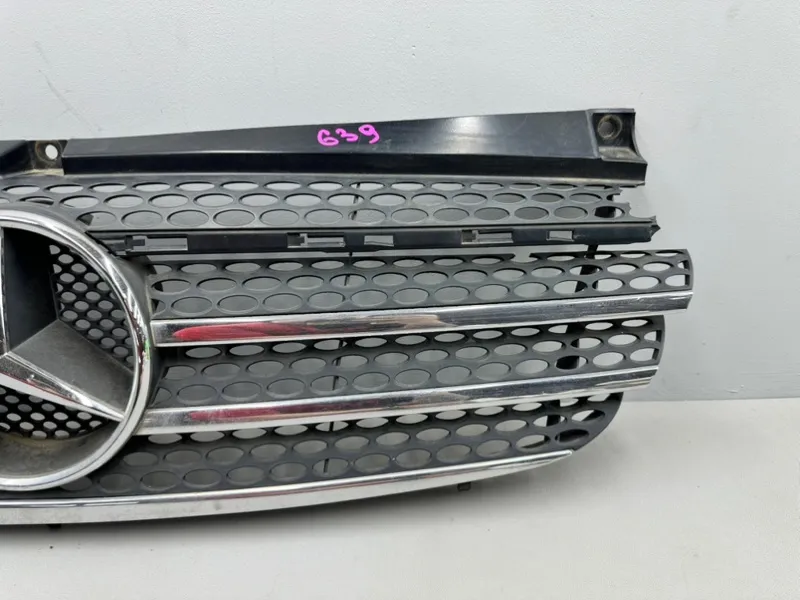 Решётка радиатора Mercedes Viano W639 дорестайлинг ( Мерседес Виано W639 ). Дефекты: оторвана хромированная накладка , многочисленные трещины, отломана часть решетки.